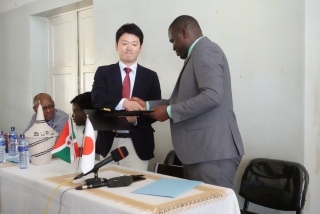 On October 26, Mr. IKUTA, head of the Economic Cooperation Unit and Dr. NIMPAYE Oscar, Health Director of Prince Regent Charles Hospital (HPRC), signed a Grant Contract amounting up to 64,576 USD under the Grant Assistance for Grassroots Human Security Projects (GGP/KUSANONE).